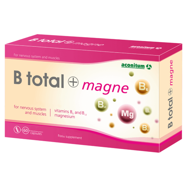 B total+ Magnesium is a dietary supplement that contains a high-dose vitamin B complex with magnesium for optimal effect. B total + magne has a special focus on contributing to a normal energy turnover, reducing fatigue and exhaustion and maintaining a normally functioning nervous system.